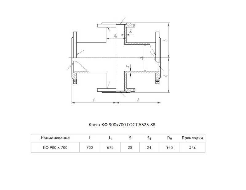 Крест КФ Ду 900х700 ВЧШГ ГОСТ 5525-88 чугунный фланцевый