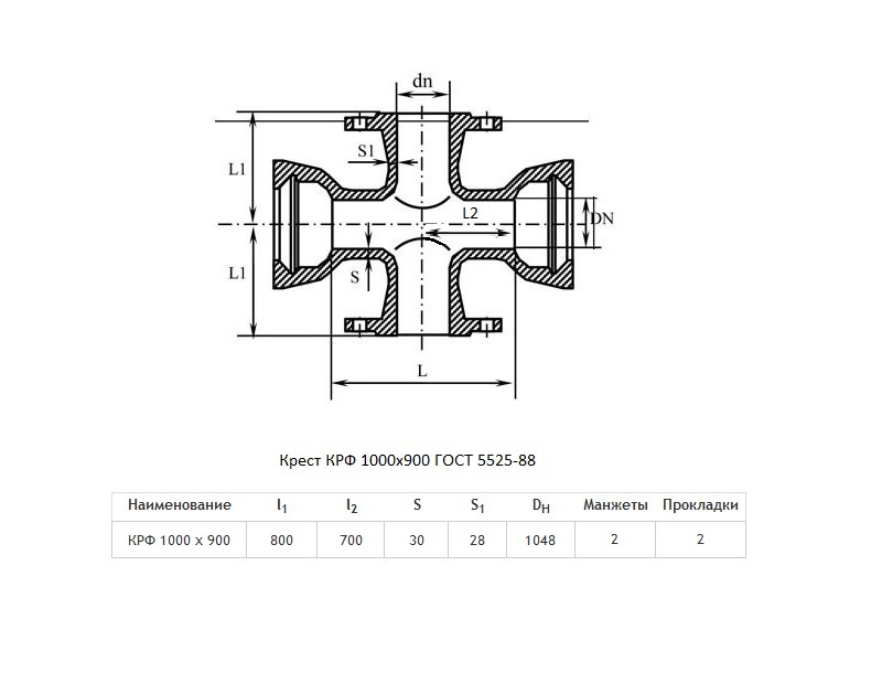 Крест КРФ Ду 1000х900 ВЧШГ ГОСТ 5525-88 чугунный раструб-фланец