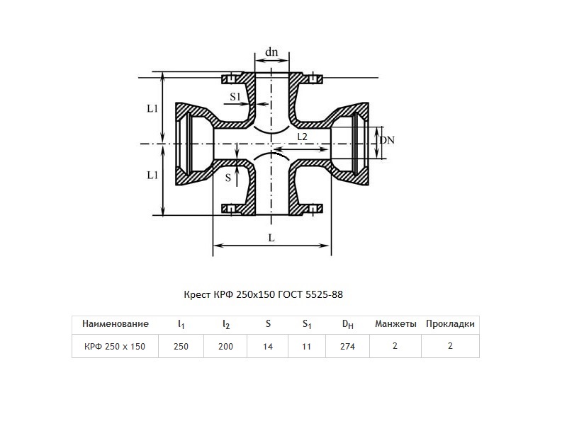 Крест КРФ Ду 250х150 ВЧШГ ГОСТ 5525-88 чугунный раструб-фланец