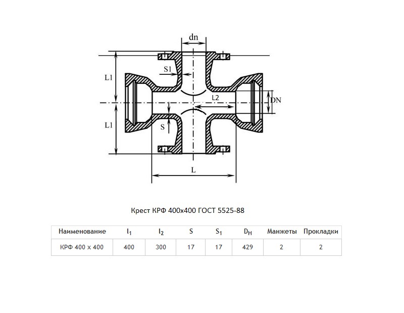 Крест КРФ Ду 400х400 ВЧШГ ГОСТ 5525-88 чугунный раструб-фланец