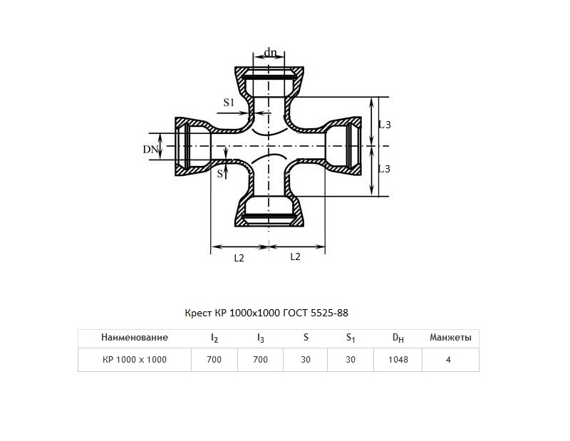 Крест КР Ду 1000х1000 ВЧШГ ГОСТ 5525-88 чугунный раструбный