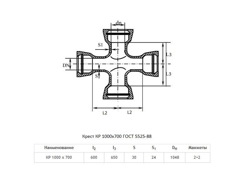 Крест КР Ду 1000х700 ВЧШГ ГОСТ 5525-88 чугунный раструбный