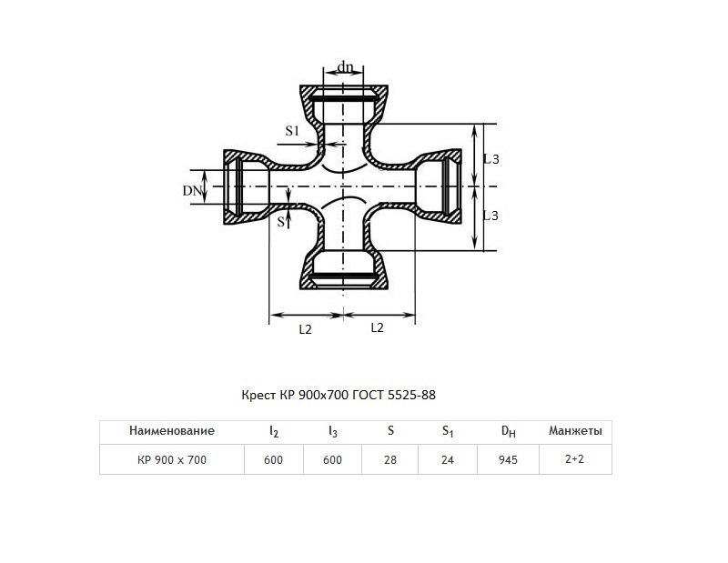 Крест КР Ду 900х700 ВЧШГ ГОСТ 5525-88 чугунный раструбный