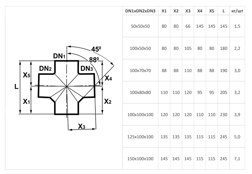 Диаметр ответвления50 мм