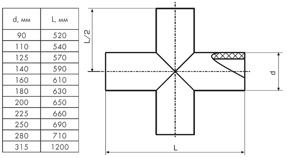 Крестовина 90 мм SDR17 90° ПЭ100 равнопроходная сварная сегментная ПНД