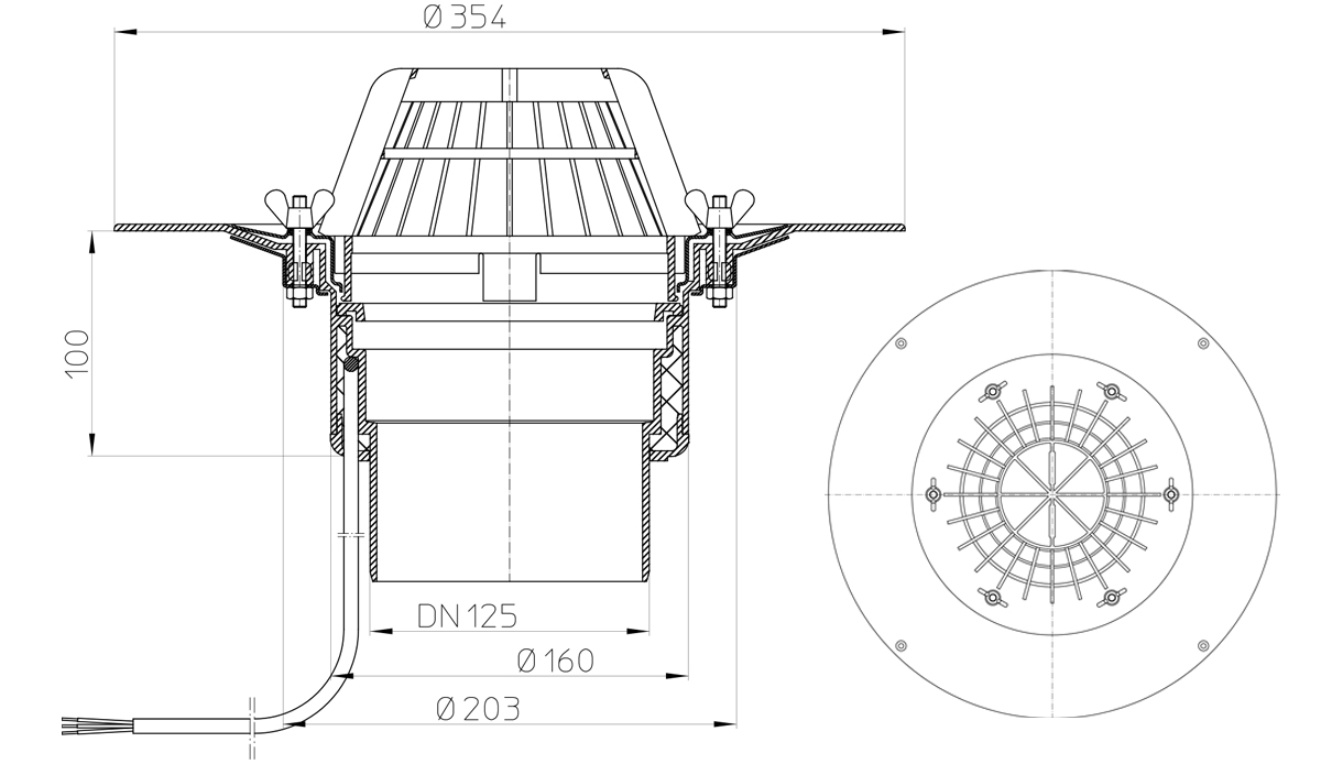 Кровельная воронка HL62.1/2 DN 125 с электрообогревом для плоской неэксплуатируемой кровли