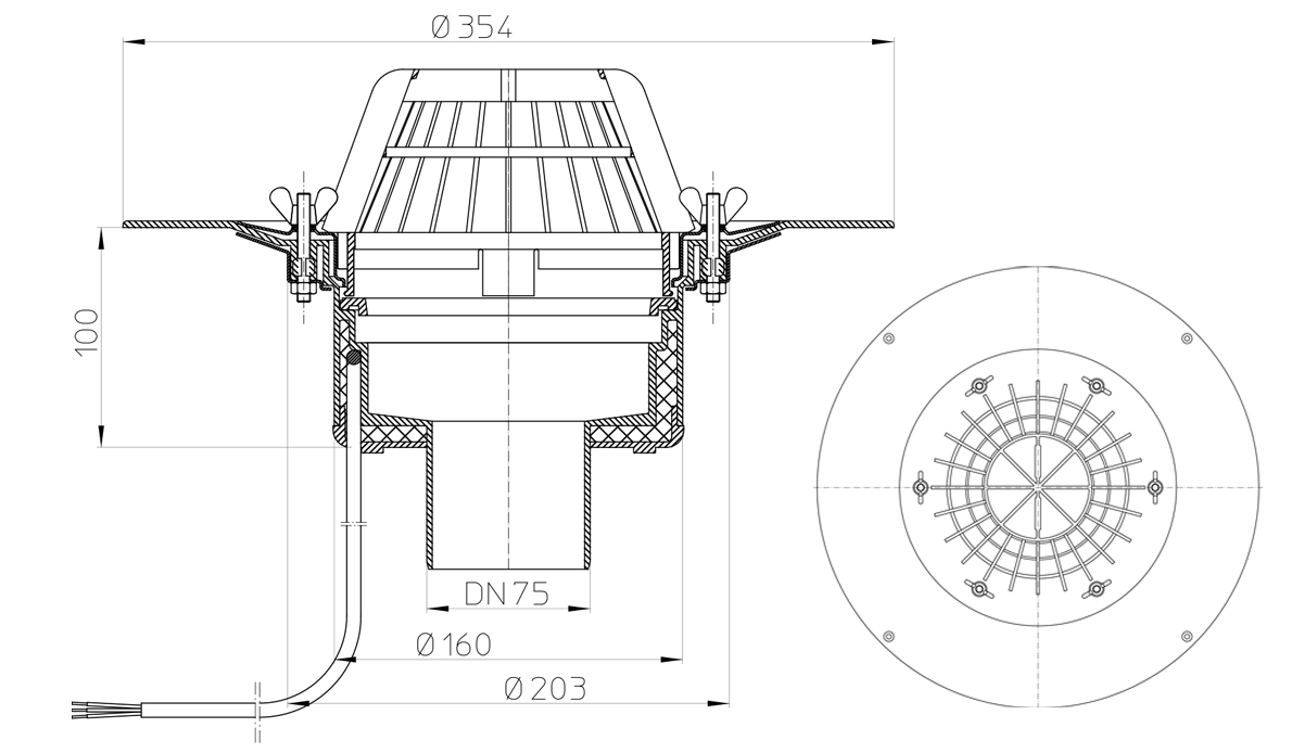 Кровельная воронка HL62.1/7 DN 75 с электрообогревом для плоской неэксплуатируемой кровли