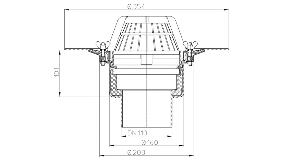 Кровельная воронка HL62/1 DN 110 стандарт для плоской неэксплуатируемой кровли