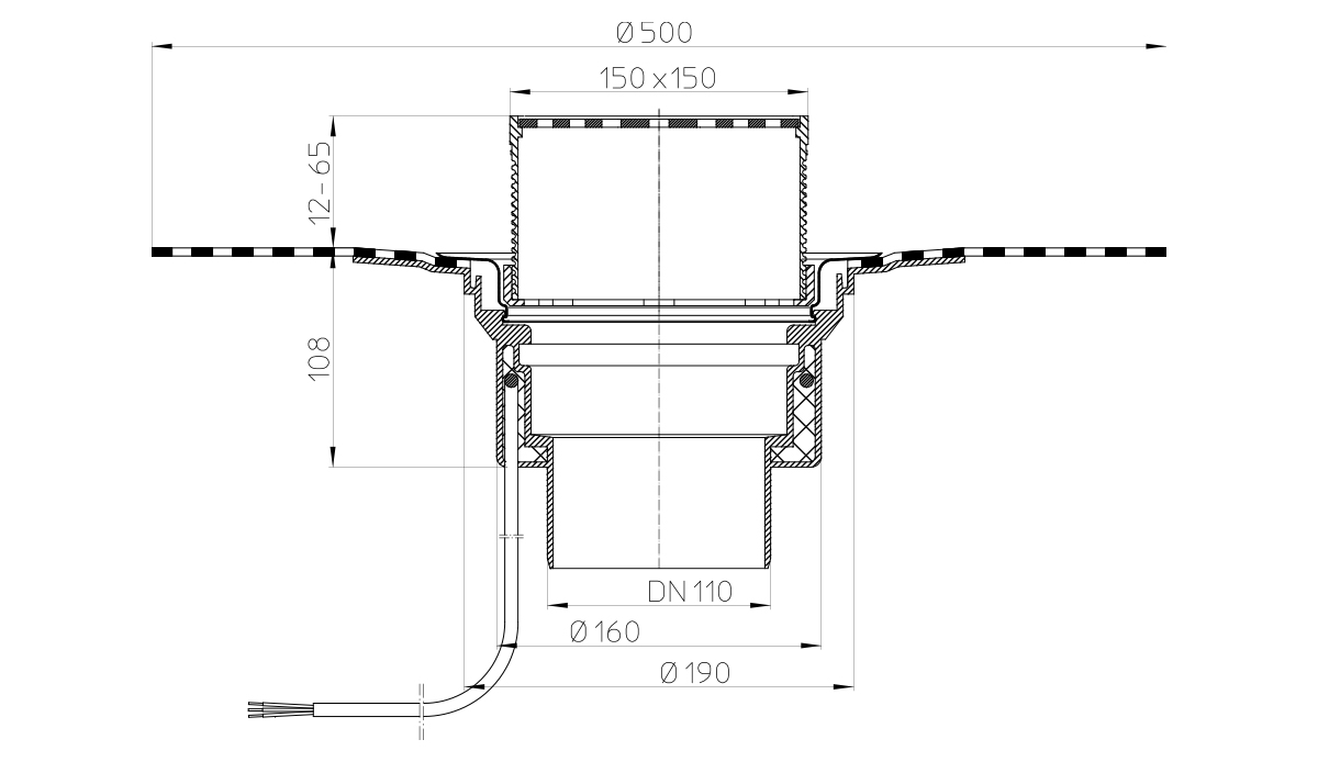 Кровельная воронка HL62.1BH/1 DN 110 с электрообогревом с гидроизоляционным полимербитумным полотном для плоской эксплуатируемой кровли