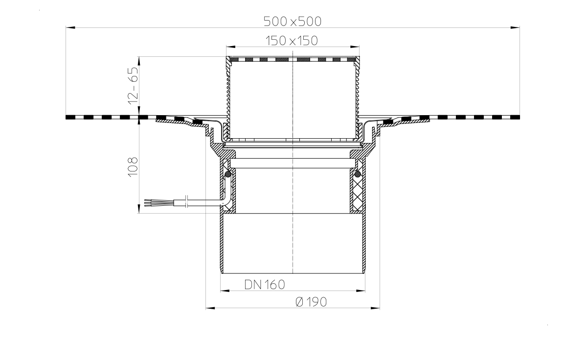 Кровельная воронка HL62.1BH/5 DN 160 с электрообогревом с гидроизоляционным полимербитумным полотном для плоской эксплуатируемой кровли