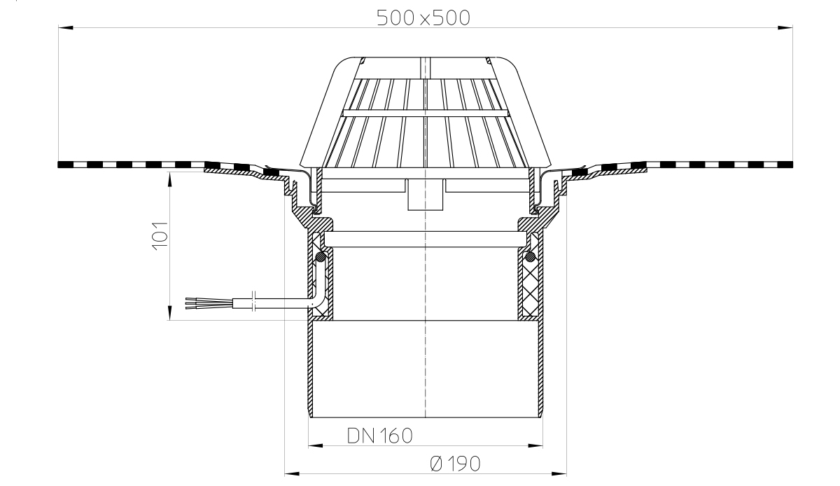 Кровельная воронка HL62.1H/5 DN 160 с электрообогревом с гидроизоляционным полимербитумным полотном для плоской кровли