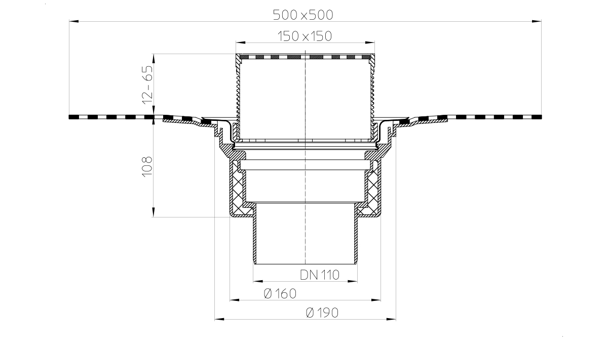 Кровельная воронка HL62BH/1 DN 110 стандарт с гидроизоляционным полимербитумным полотном для плоской эксплуатируемой кровли