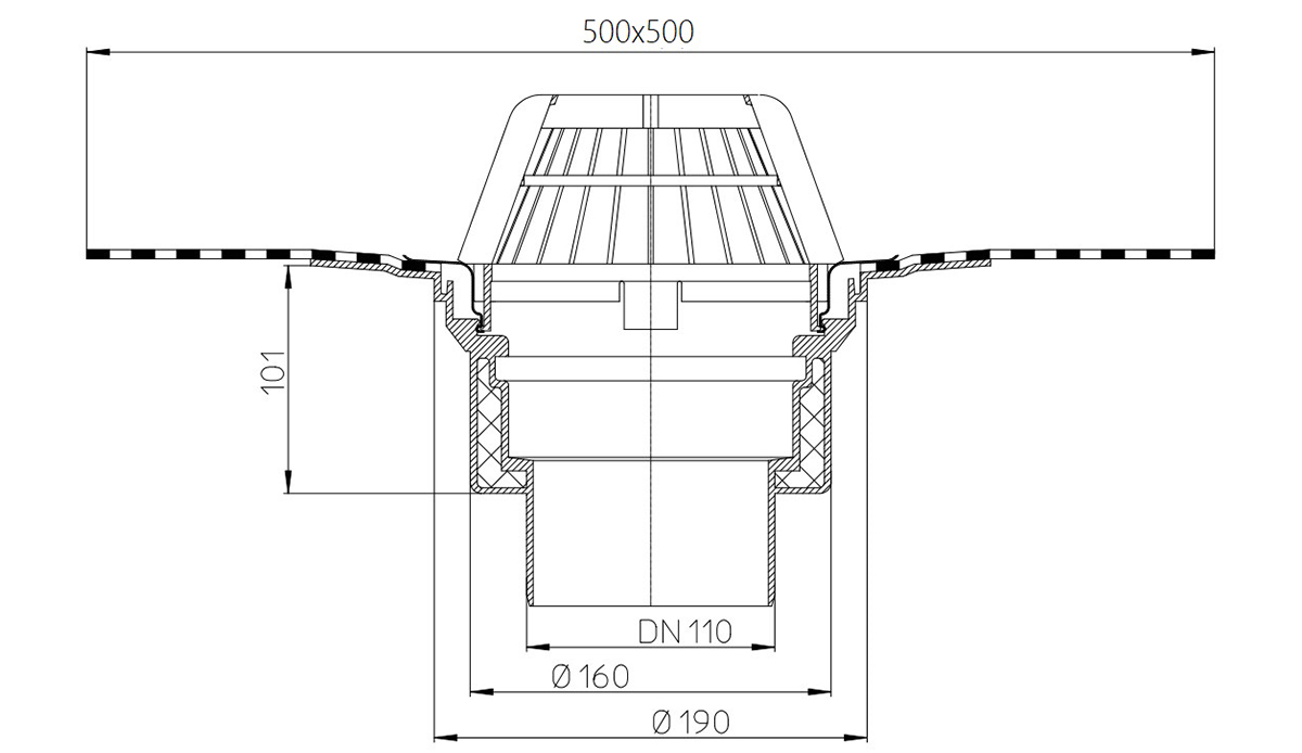 Кровельная воронка HL62H/1 DN 110 стандарт с гидроизоляционным полимербитумным полотном для плоской кровли