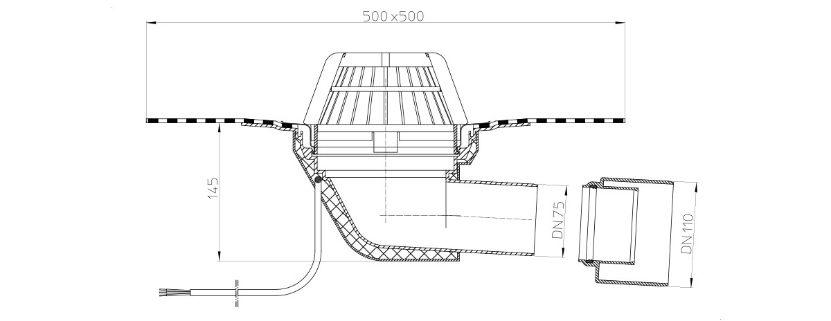 Кровельная воронка HL64.1H DN 75/110 с горизонтальным выпуском с электрообогревом с полимербитумным полотном