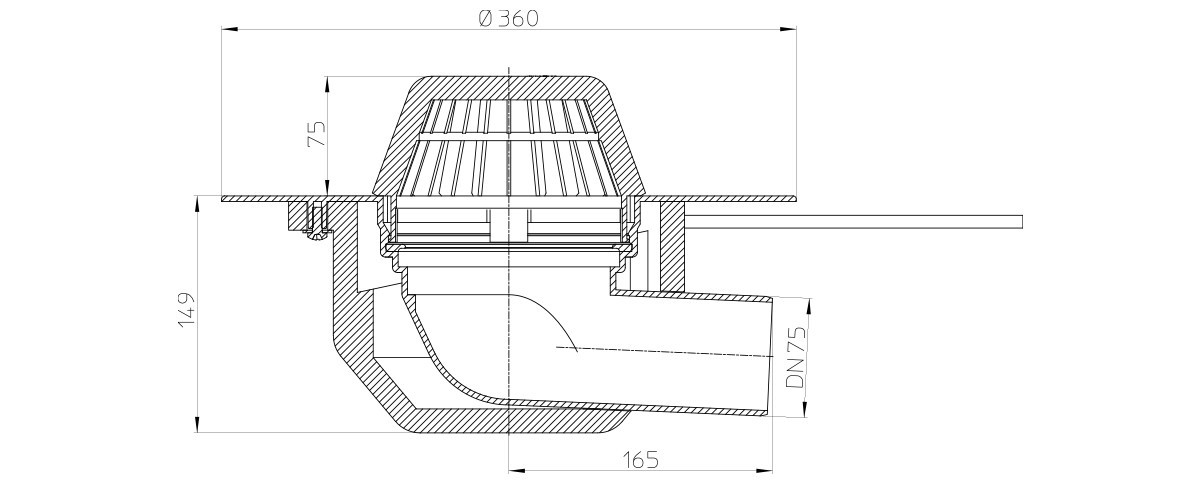 Кровельная воронка HL64.1P/7 DN 75 с электрообогревом для гидроизоляции из ПВХ с горизонтальным выпуском