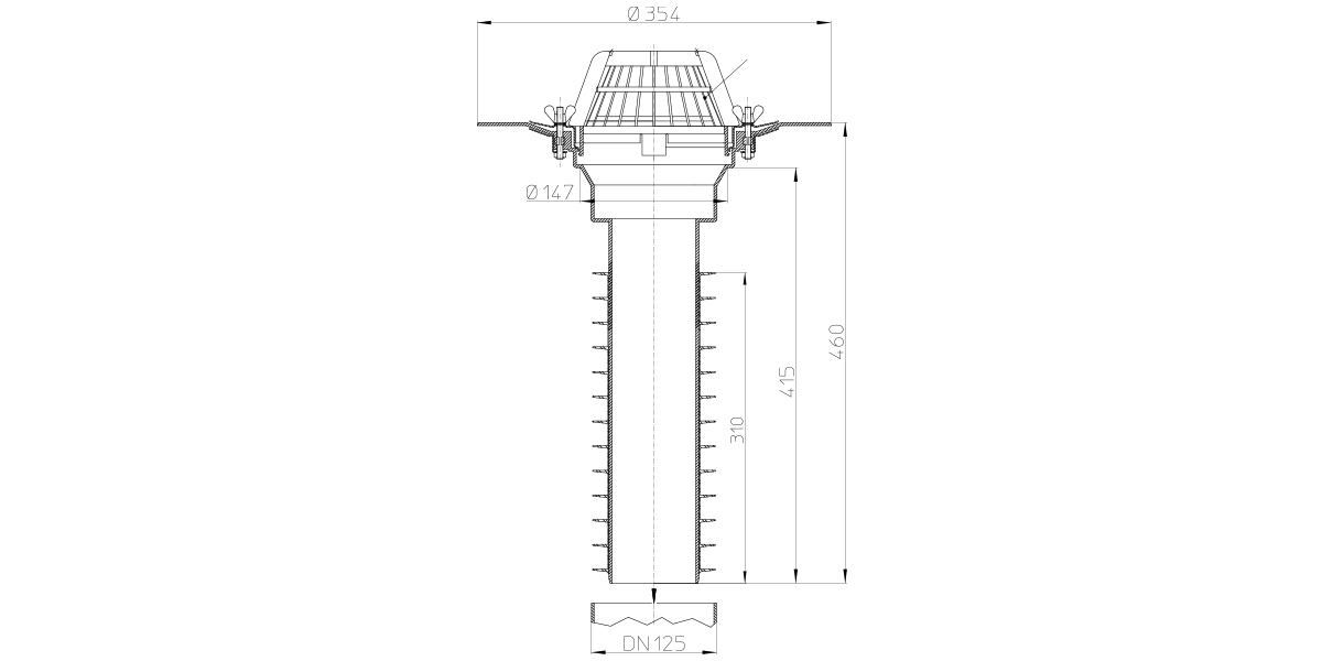 Кровельная воронка HL69/2 DN 125 универсальная с вертикальным выпуском