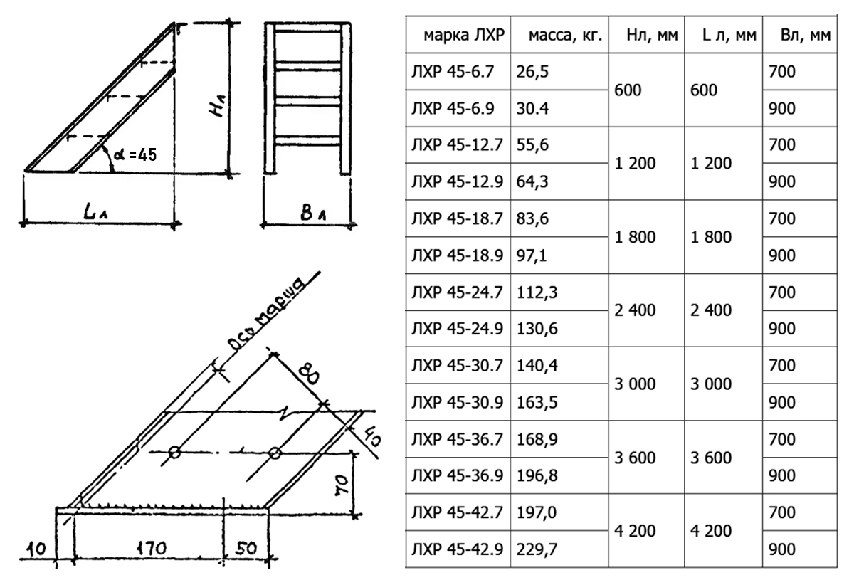 Лестница ЛХР 45-24.9 Серия 1.450.3-7.94