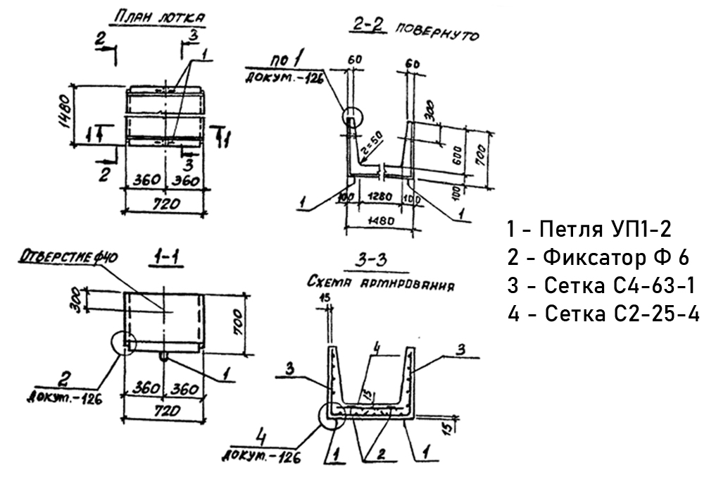 Лоток железобетонный Л 11д-8 для сборного канала Серия 3.006.1-2.87