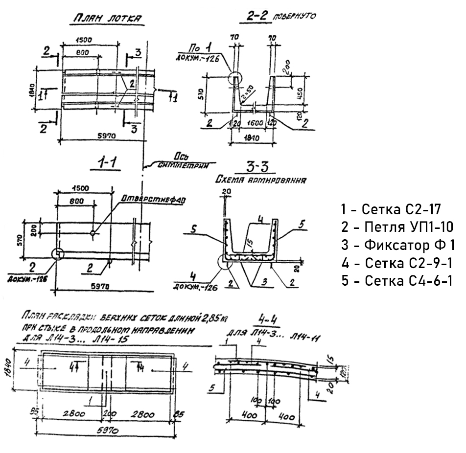 Лоток железобетонный Л 14-8/2 для сборного канала Серия 3.006.1-2.87