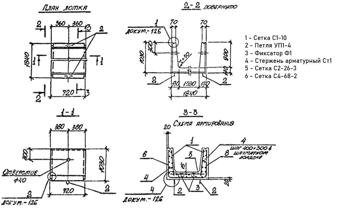 Лоток железобетонный Л 16д-8 для сборного канала Серия 3.006.1-2.87