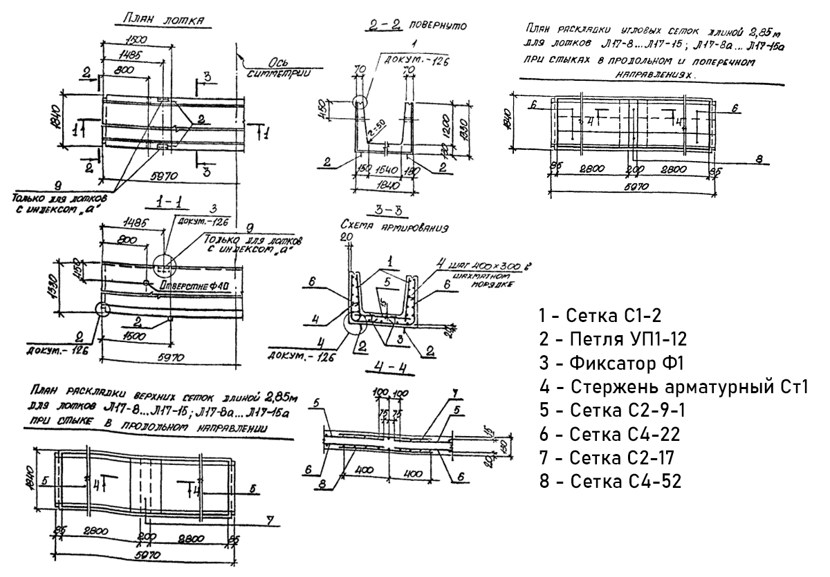 Лоток железобетонный Л 17-8/2 для сборного канала Серия 3.006.1-2.87