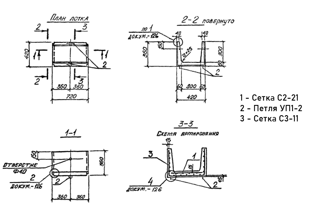 Лоток железобетонный Л 1д-8 для сборного канала Серия 3.006.1-2.87