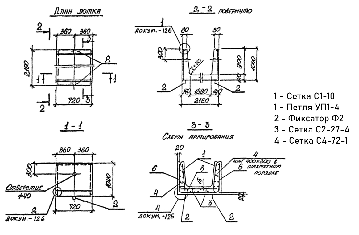 Лоток железобетонный Л 20д-11 для сборного канала Серия 3.006.1-2.87