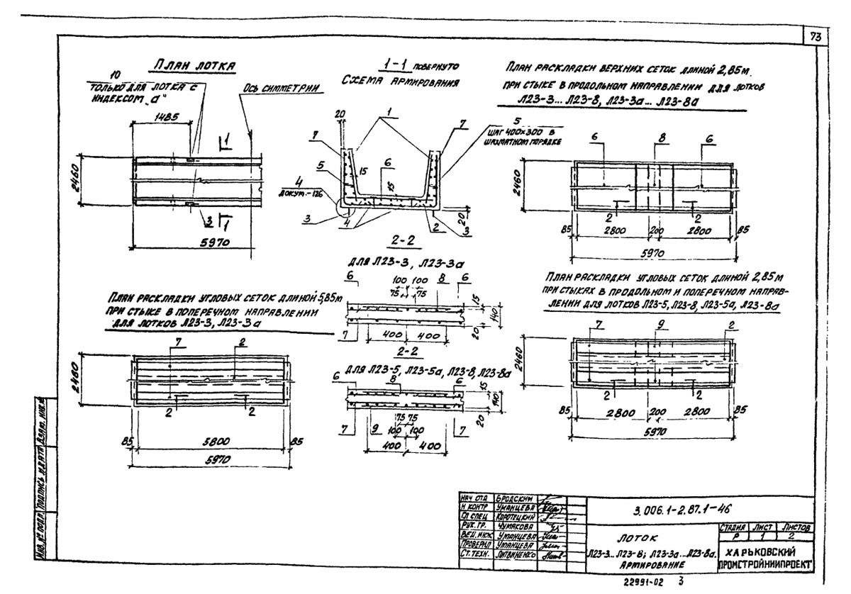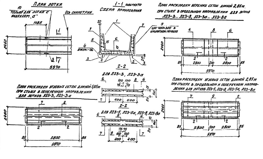Лоток железобетонный Л 23-8/2 для сборного канала Серия 3.006.1-2.87
