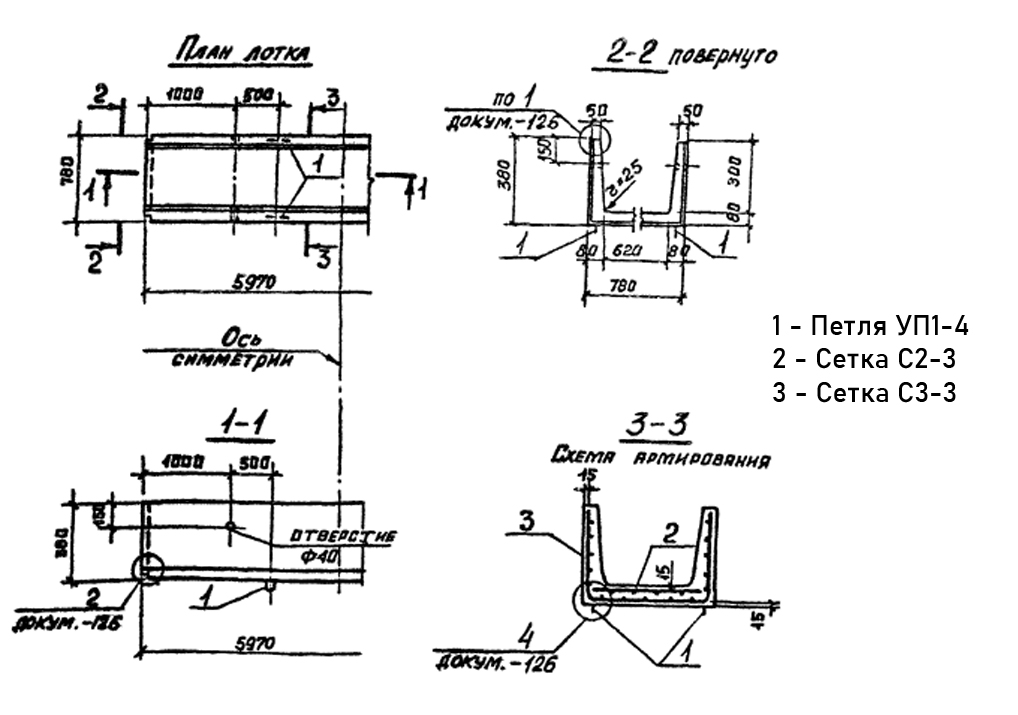 Лоток железобетонный Л 3-8/2 для сборного канала Серия 3.006.1-2.87