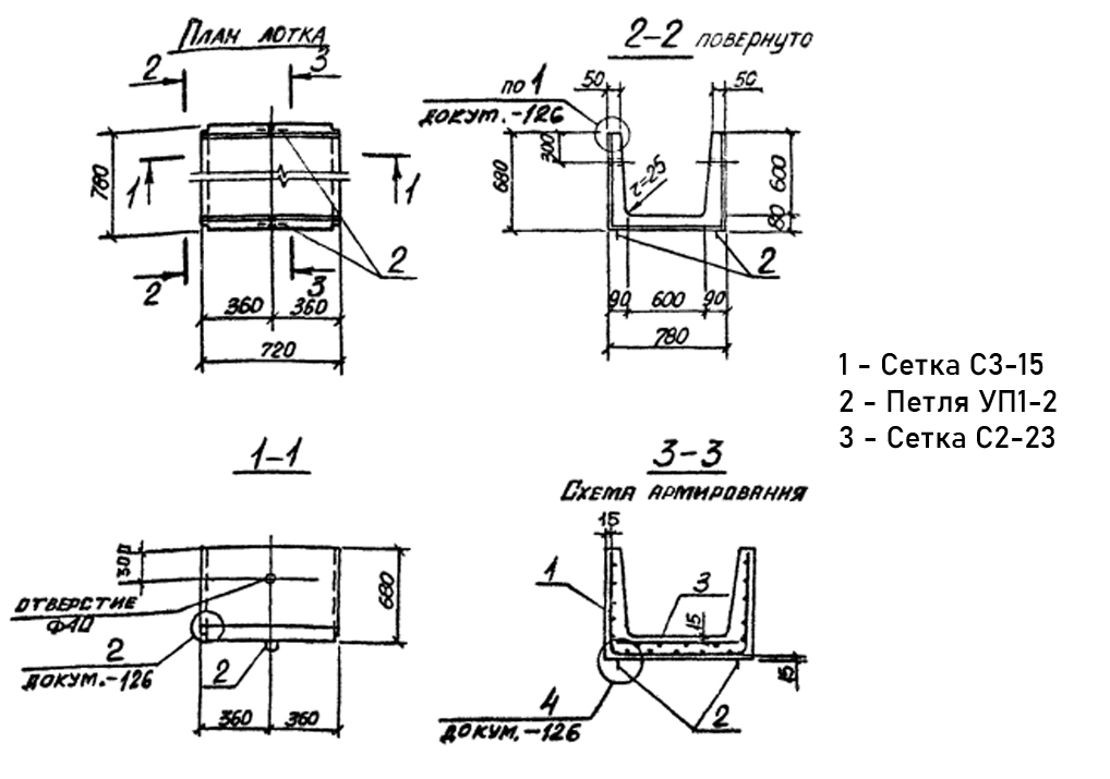 Лоток железобетонный Л 5д-8 для сборного канала Серия 3.006.1-2.87