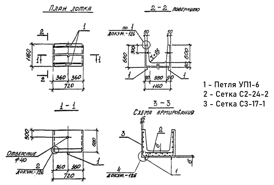 Лоток железобетонный Л 7д- 8 для сборного канала Серия 3.006.1-2.87