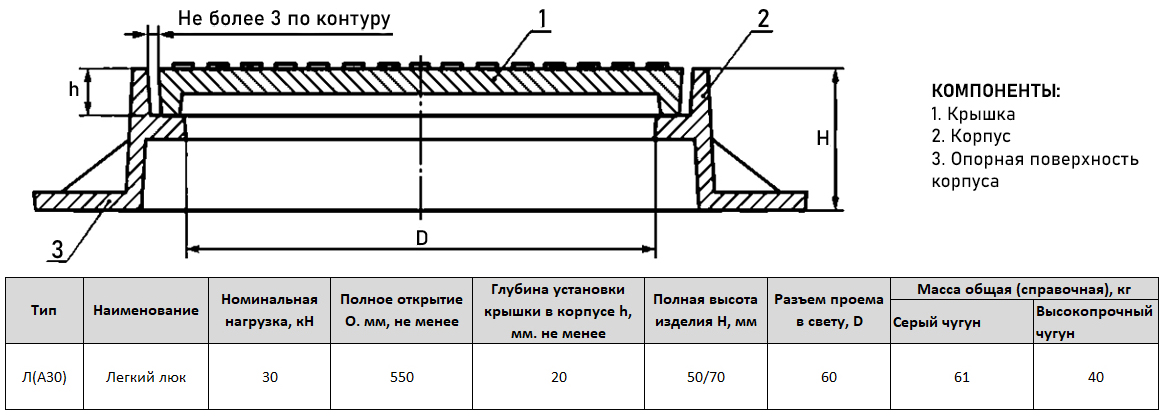 Люк чугунный легкий Л(А30)-К-1-60 для канализации ГОСТ 3634-2019