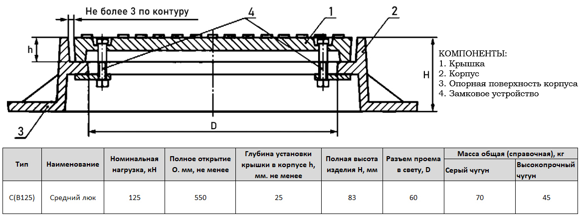 Люк чугунный средний С(В125)-К-2-60 для канализации ГОСТ 3634-2019
