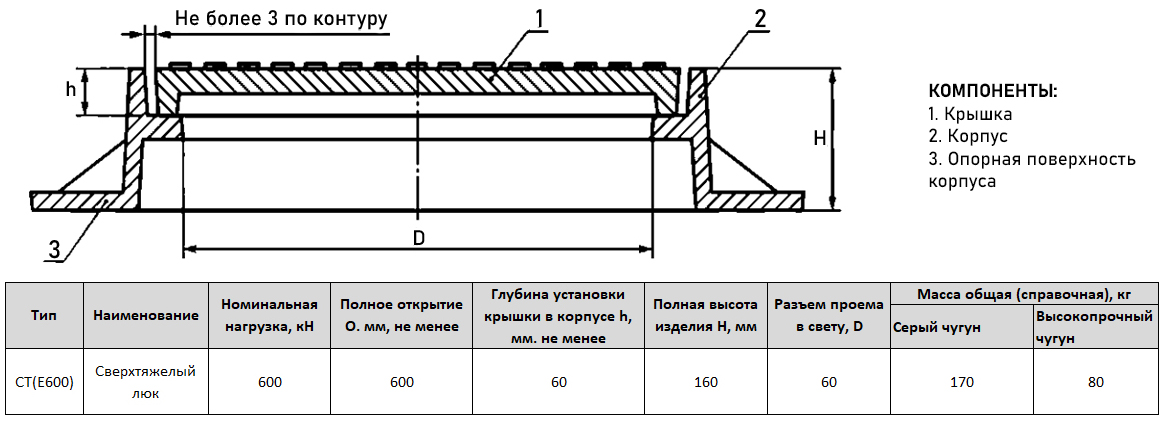 Люк чугунный сверхтяжелый СТ(Е600)-ТС-1-60 для тепловых сетей ГОСТ 3634-2019