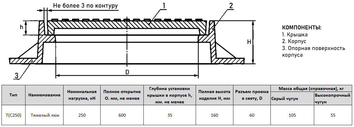 Люк чугунный тяжелый Т(С250)-ТС-1-60 для тепловых сетей ГОСТ 3634-2019
