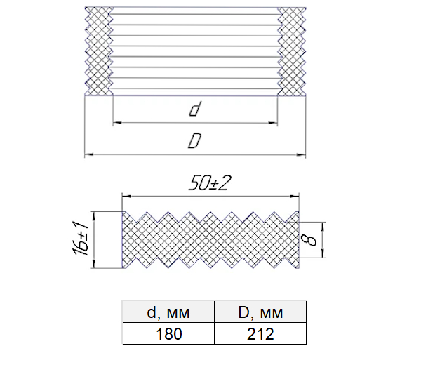 Наружный диаметр манжеты212 мм