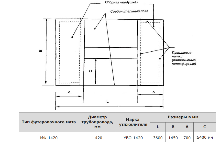 Мат футеровочный МФ-1420 для железобетонных утяжелителей УБО, УБО-М