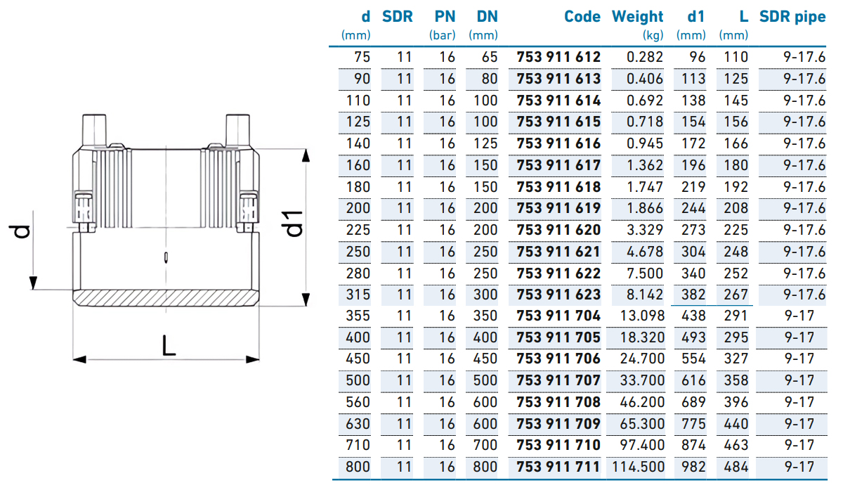 Тип изделияМуфта ПНД