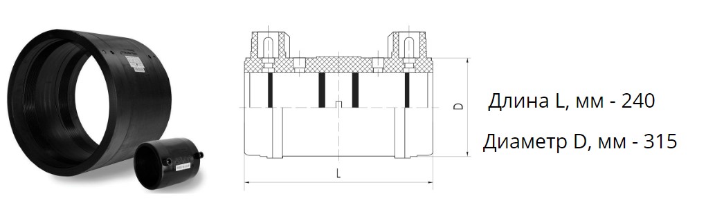 Муфта э/с 315 мм SDR 17 ПЭ100 электросварная