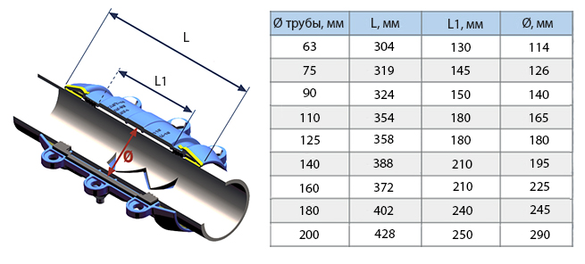 Муфта ремонтная для пластиковых труб UR-CAST UR-41 DE 125 мм PN 16 чугунная