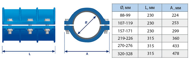 Муфта ремонтная двухсоставная UR-CAST UR-42 DN 80 (88-99) мм PN 16 чугунная