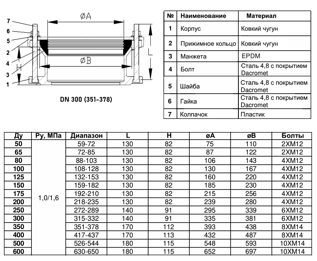 Муфта соединительная Benarmo ПФРК 7010 DN 350 (351-378 мм) PN 10/16 фланцевая чугунная