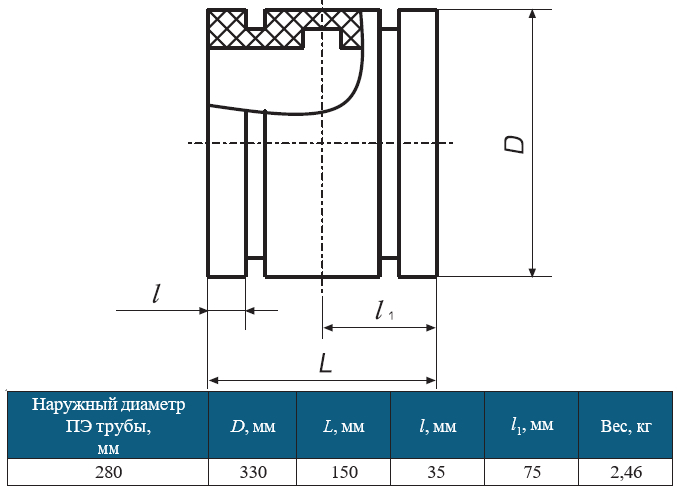 Муфта защитная 280 мм ПЭ 100 для прохода через ЖБ колодец ПНД трубы