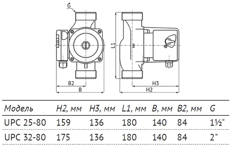 Насос циркуляционный Unipump UPC 25-80 180 с мокрым ротором H=8м Q=120л/мин арт. 93873