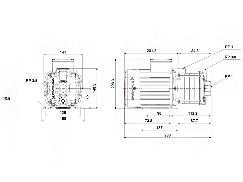 Вид насосагоризонтальный