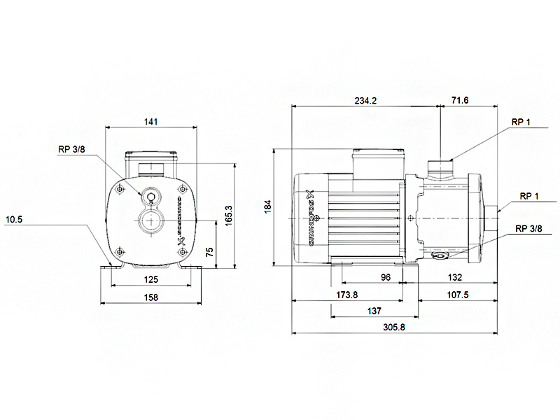 Насос многоступенчатый горизонтальный Grundfos CM 1-2 A-R-I-E-AQQE F-A-A-N