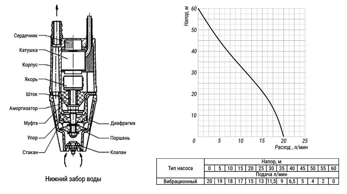 Насос вибрационный VALFEX VF.V.20.60.40 DN 19 нижнее подключение