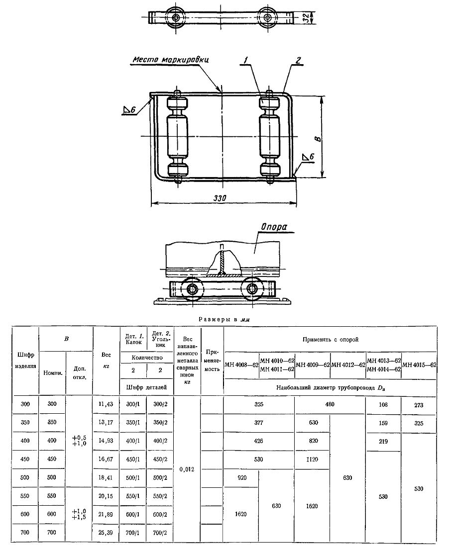 Диаметр трубы426 мм (МН 4008-62, МН 4010-62, МН 4011-62); 820 мм (МН 4009-62); 630 мм (МН 4012-62); 219 мм (МН 4013-62, МН 4014-62); 530 мм (МН 4015-62)