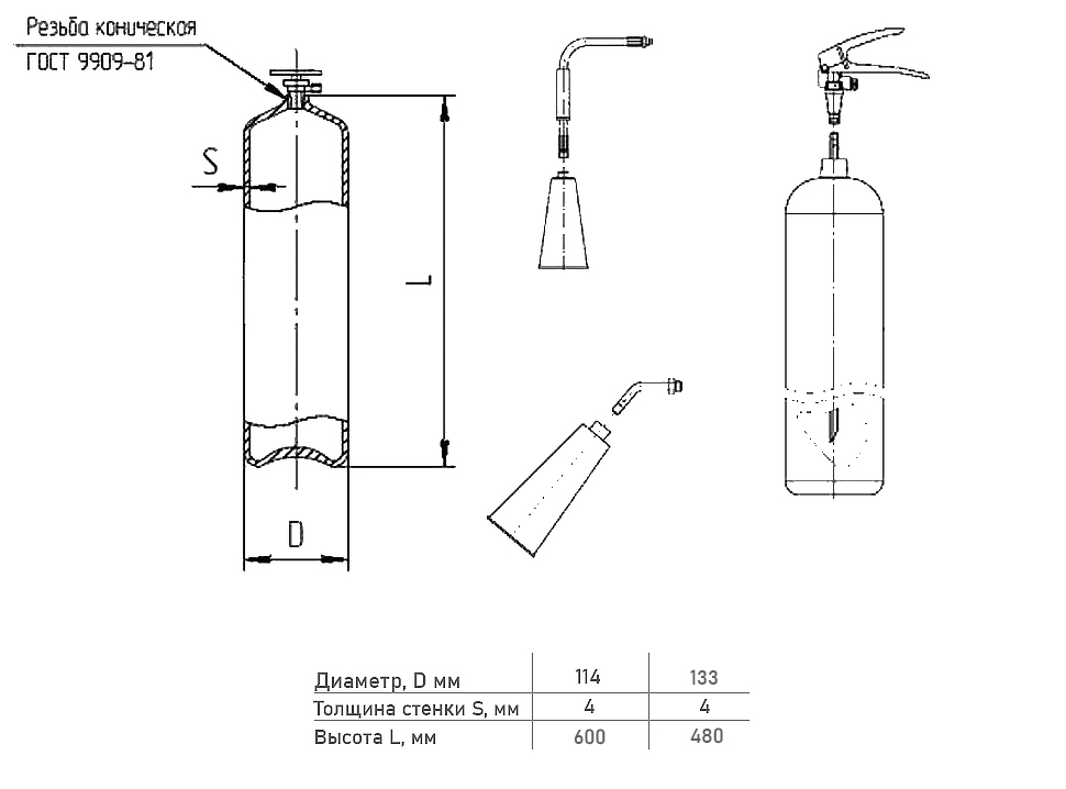 Огнетушитель углекислотный Ярпожинвест ОУ-3-ВСЕ-133-480, ЗПУ-алюминий