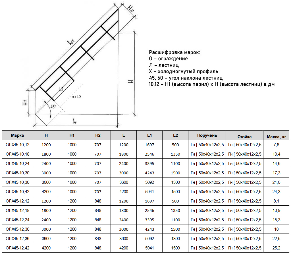 Ограждение лестниц ОЛХ 45-12.24 Серия 1.450.3-7.94